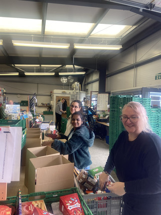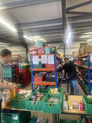 We worked until 1pm (with only one tea break!) unpacking food donations, sorting packets, tins and bottles onto the racking and then packing up boxes for singles, couples or families who would later collect the parcels from depots across the county. We were surprised by the amount of food donated to the warehouse which shows that the foodbank is unfortunately much needed in the area.